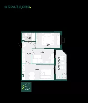 Продается 2-х комн. новостройка, 67.83 кв.м., 21/21 эт