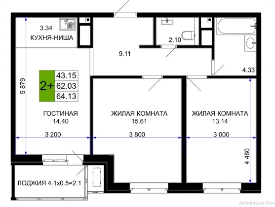 | Площадь, кв.м. | 64 |