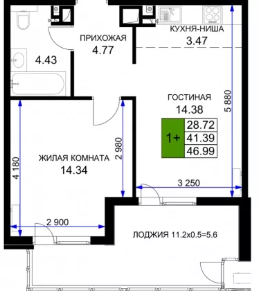 Продается однокомнатная новостройка, 46.99 кв.м., 6/16 эт