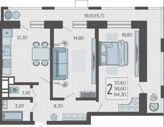 | Площадь, кв.м. | 64.3 |