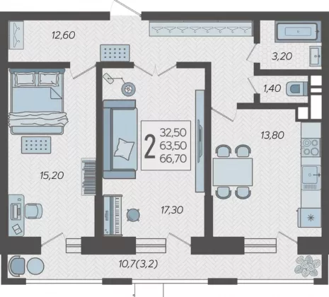 Продается 2-х комн. новостройка, 66.7 кв.м., 9/12 эт