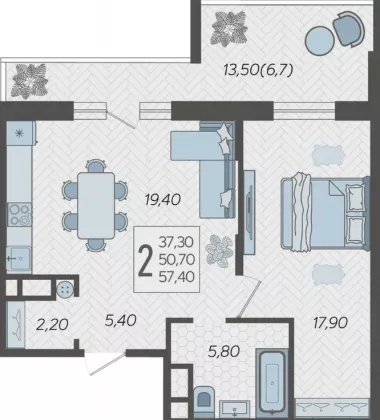 | Площадь, кв.м. | 57.4 |