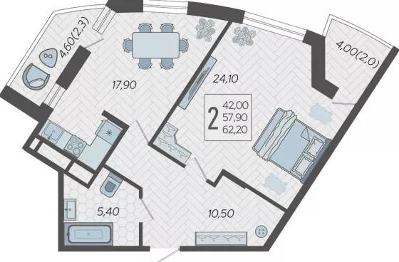 Продается 2-х комн. новостройка, 62.2 кв.м., 9/16 эт