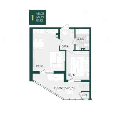 Продается однокомнатная новостройка, 48.08 кв.м., 12/21 эт