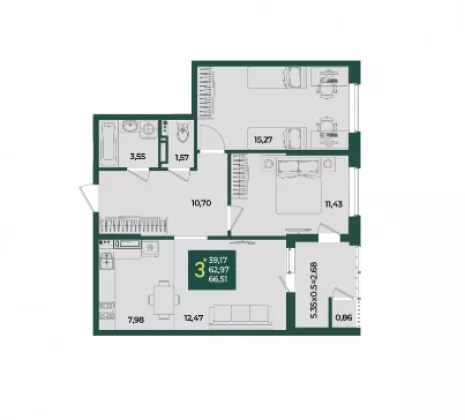 Продается 2-х комн. новостройка, 66.51 кв.м., 11/21 эт