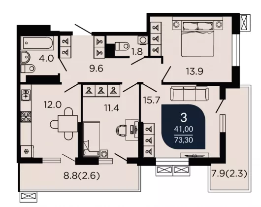 Продается 3-х комн. новостройка, 75.9 кв.м., 12/23 эт