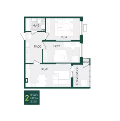 Продается 2-х комн. новостройка, 64.54 кв.м., 14/21 эт