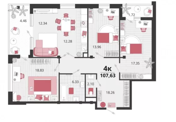 Продается 4-х комн. новостройка, 107.63 кв.м., 15/18 эт