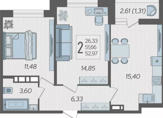 Продается 2-х комн. новостройка, 52.97 кв.м., 8/19 эт