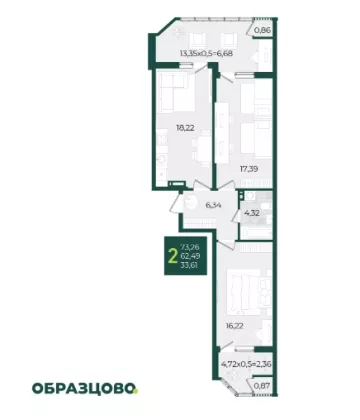 Продается 2-х комн. новостройка, 74 кв.м., 9/21 эт
