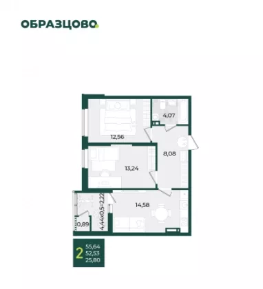 Двухкомнатная квартира в новом доме класса комфорт+.