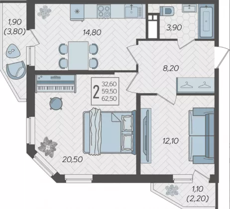Продается 2-х комн. новостройка, 62.5 кв.м., 7/16 эт