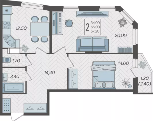 Продается 2-х комн. новостройка, 67.2 кв.м., 9/16 эт