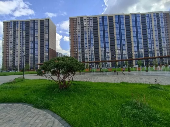Новый микрорайон, в котором находится наша квартира, отличается комплексным благоустройством. В шаговой доступности находятся школа, четыре детских сада, поликлиника, парковая зона, прогулочные аллеи, детские и спортивные площадки, а также тематические зоны отдыха для взрослых и детей всех возрастов.