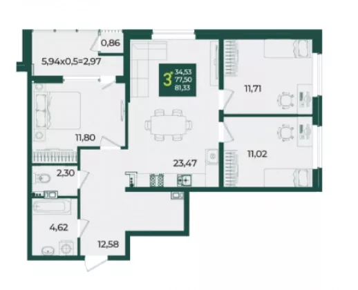 Квартира с современной планировкой, отлично подойдет для семьи с детьми.