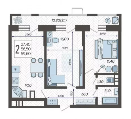 В избранное Двухкомнатная квартира