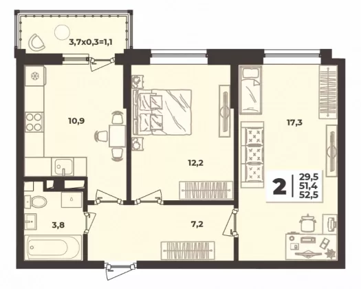 Двухкомнатная квартира в комплексе класса комфорт+.