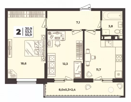 | Площадь, кв.м. | 55.9 |