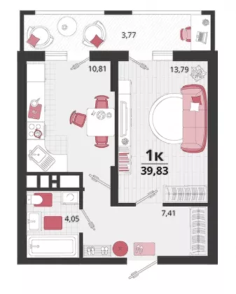 Продается однокомнатная новостройка, 39.83 кв.м., 9/18 эт