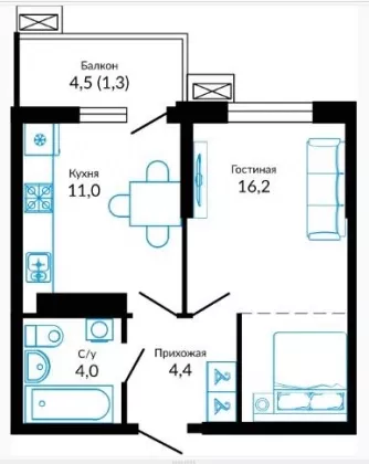 Продается однокомнатная новостройка, 38 кв.м., 6/22 эт