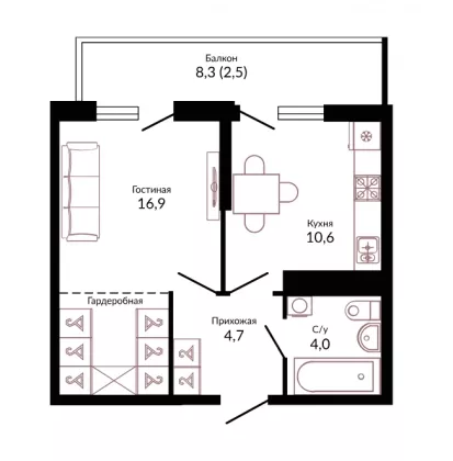 Продается однокомнатная новостройка, 39.7 кв.м., 20/22 эт