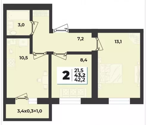 Продается 2-х комн. новостройка, 43.2 кв.м., 3/5 эт