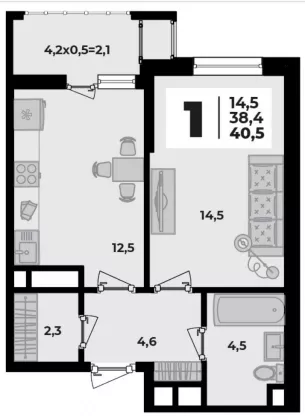Продается однокомнатная новостройка, 40.5 кв.м., 2/8 эт