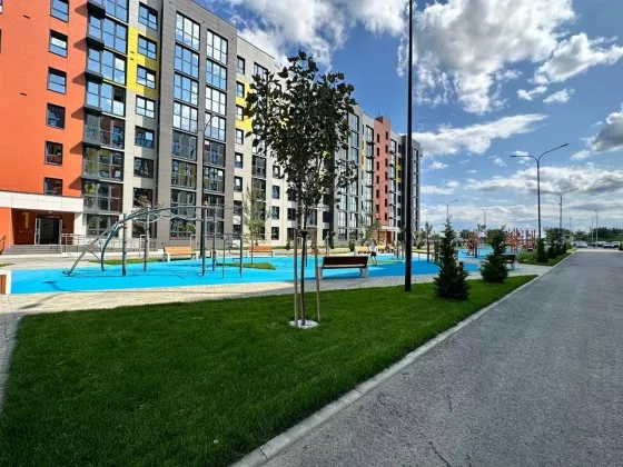 Благоустроенная придомовая территория, детские игровые площадки, спортивные площадки с безопасным покрытием для командных игр, зоны отдыха с арт-объектами.