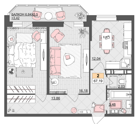 Двухкомнатная квартира в комплексе класса комфорт+.
