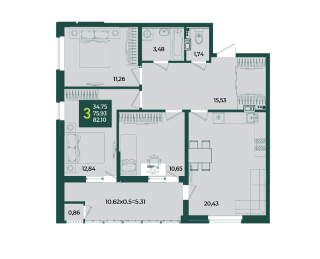 Продается 3-х комн. новостройка, 82.1 кв.м., 8/21 эт