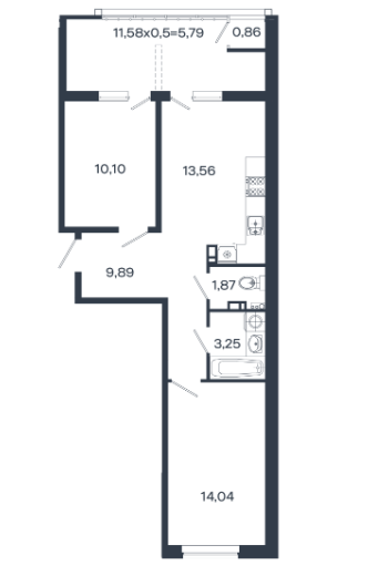Двухкомнатная квартира в новом доме класса комфорт+.