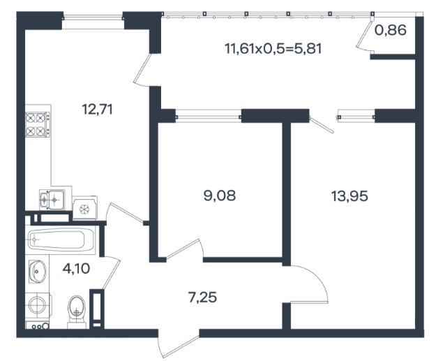 Двухкомнатная квартира в новом доме класса комфорт+.