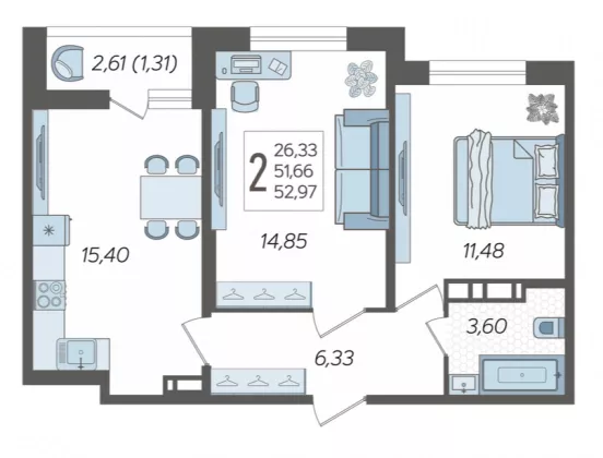 Продается 2-х комн. новостройка, 52.97 кв.м., 9/16 эт