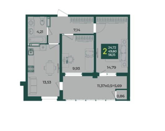 Продается 2-х комн. новостройка, 56.15 кв.м., 8/21 эт