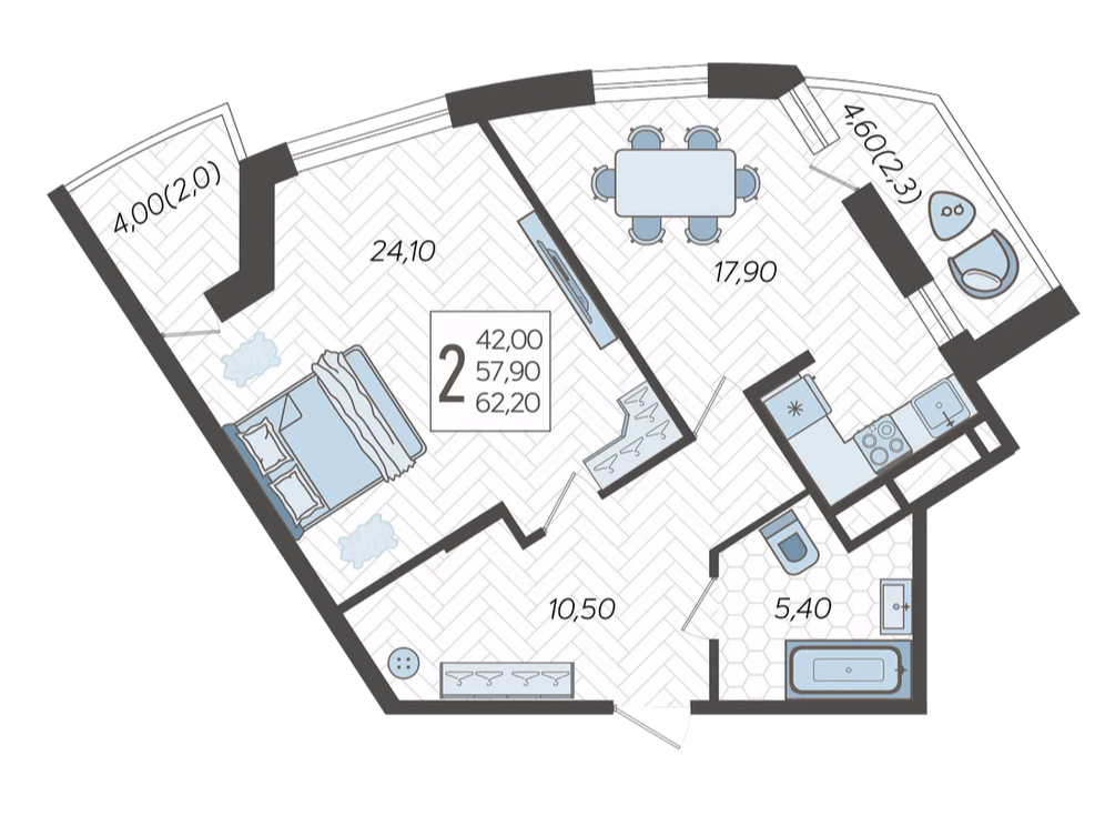 Продается 2-х комн. новостройка, 62.2 кв.м., 12/16 эт