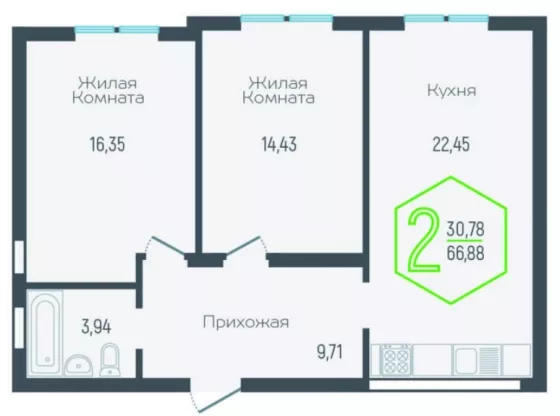 | Площадь, кв.м. | 66.88 |