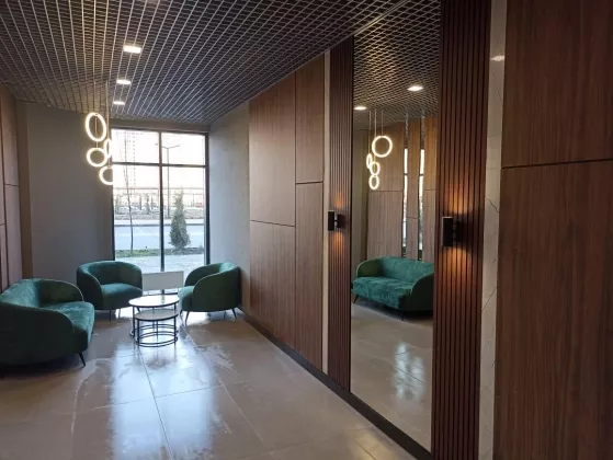 Дом построен по монолитно-кирпичной технологии с использованием высококачественных материалов. Доступ в подъезды осуществляется по системе Face ID, а входные группы оформлены в современном стиле с уютными зонами отдыха, обставленными мягкой мебелью. В каждом подъезде есть три лифта, а на этаже расположено от 3 до 6 квартир. Кроме того, предусмотрен консьерж-сервис и просторные помещения для колясок, велосипедов и самокатов. Во дворе находится стилобат с зонами для отдыха и спортивными площадками.