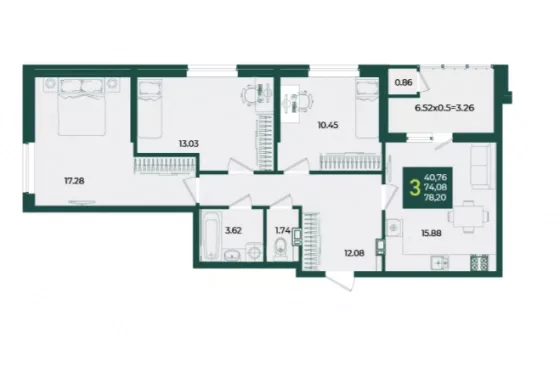 Трехкомнатная квартира в новом доме класса комфорт+.