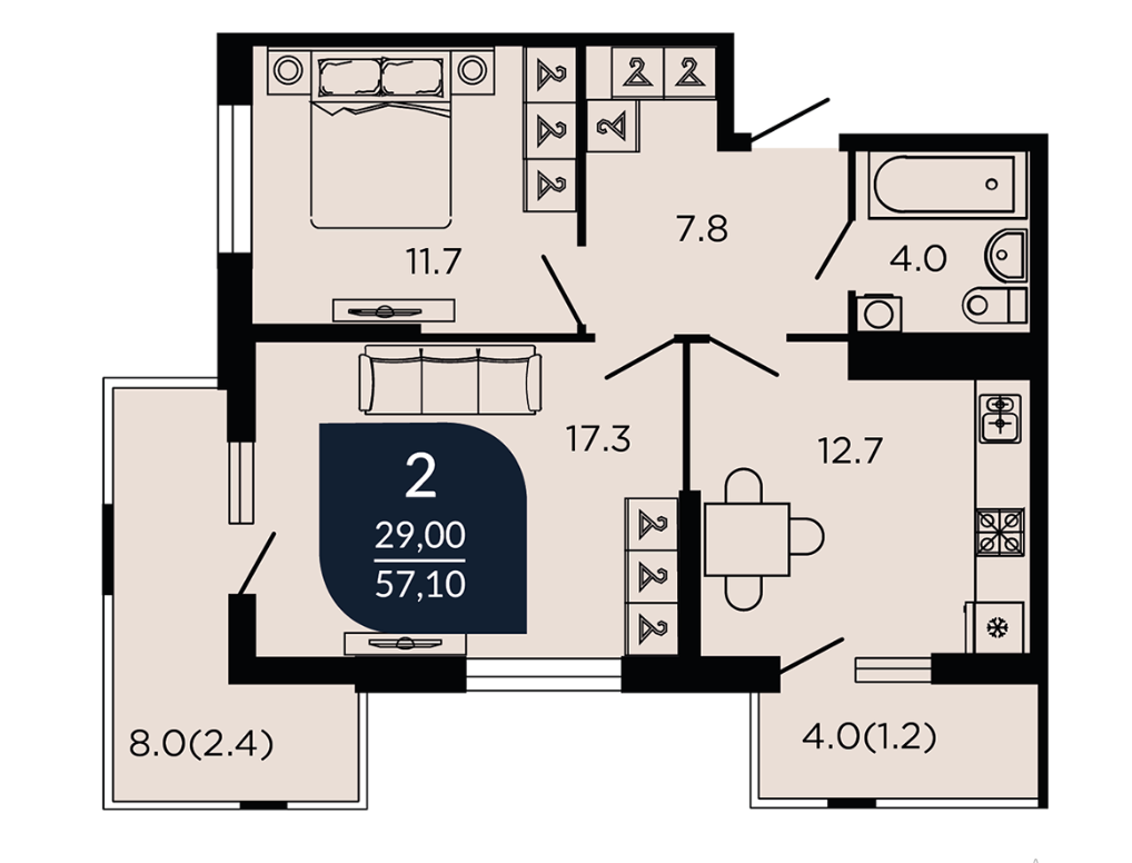 В избранное Двухкомнатная квартира
