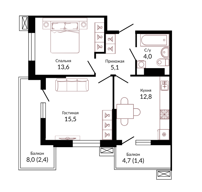 Продается 2-х комн. новостройка, 56.3 кв.м., 11/22 эт
