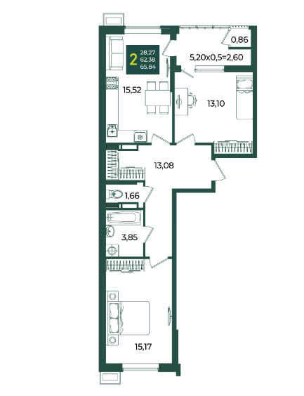 Продается 2-х комн. новостройка, 65.84 кв.м., 17/21 эт