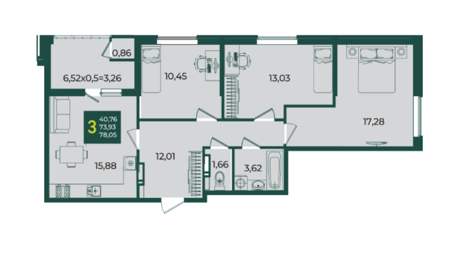 Продается 3-х комн. новостройка, 78.05 кв.м., 11/18 эт