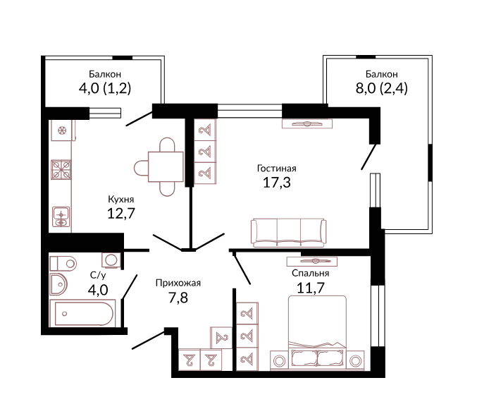 В избранное Двухкомнатная квартира