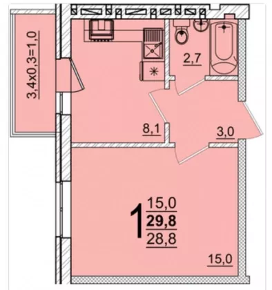 Продается однокомнатная новостройка, 29.8 кв.м., 3/5 эт