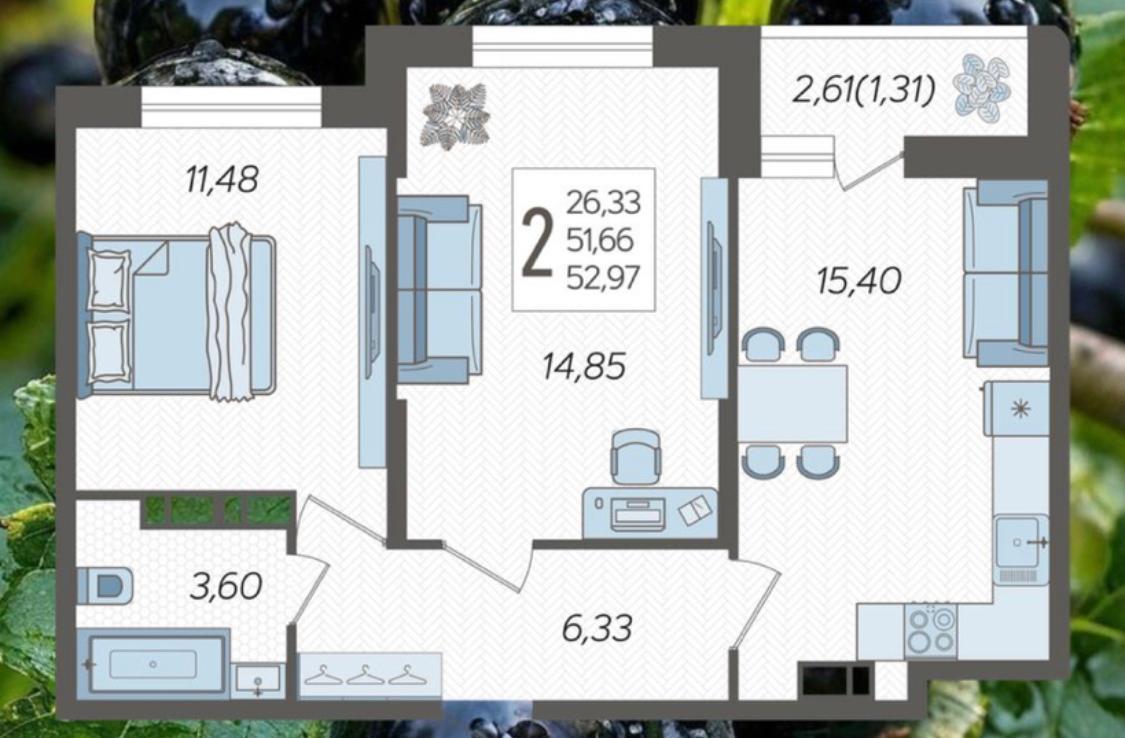 Продается 2-х комн. новостройка, 51.79 кв.м., 3/16 эт