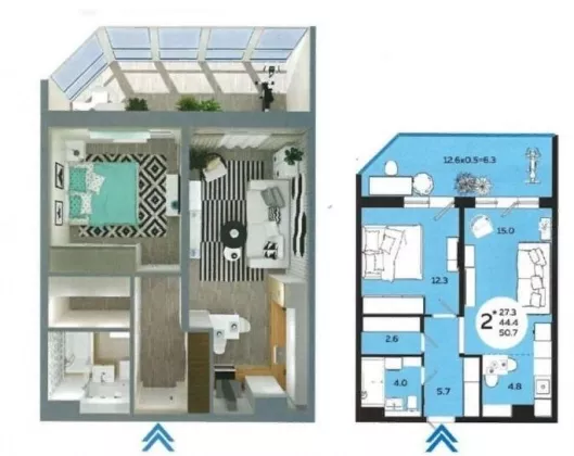 Продается 2-х комн. новостройка, 50.7 кв.м., 8/24 эт