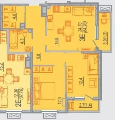 Продается 3-х комн. новостройка, 64.2 кв.м., 7/9 эт