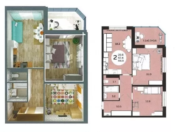 Продается 2-х комн. новостройка, 66 кв.м., 10/24 эт