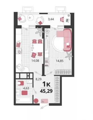 Продается однокомнатная новостройка, 45.2 кв.м., 15/24 эт