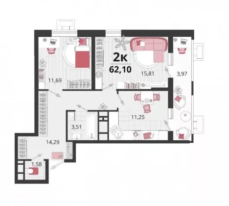 Продается 2-х комн. новостройка, 62.1 кв.м., 6/24 эт